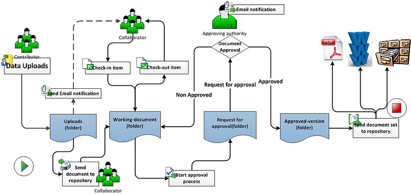 The basic purpose of a document management system (DMS) is to manage the creation, tracking, management, storage and retrieval of documents.
